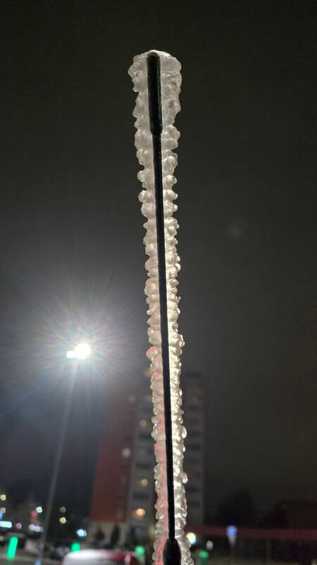 „O man sunkiai radijo bangas gaudė“, – grupėje rašė kitas, įkėlęs apledėjusios antenos nuotrauką.