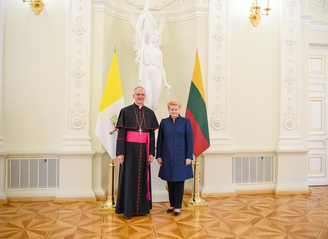 Naujasis apaštališkasis nuncijus taip pat perdavė popiežiaus Pranciškaus linkėjimus kadenciją baigiančiai šalies vadovei. Anot D. Grybauskaitės, su Šventuoju Sostu Lietuvos santykiai yra itin geri ir artimi.