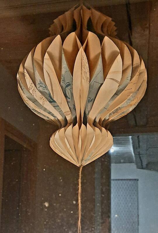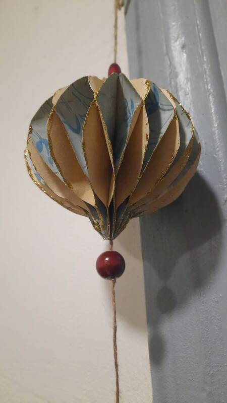 Vis dėlto tapetų buvo tiek daug, kad teko ieškoti papildomų idėjų, kaip juos panaudoti. „Pas mus viešėjo mano tėvai, kurie šiuo metu gyvena Norvegijoje. Ten, prasidėjus adventui, žmonės languose kabina šviečiančią Šiaurinę žvaigždę. Mamai kilo mintis internete susirasti tokios žvaigždės šabloną ir pabandyti ją išlankstyti iš tapetinio popieriaus“, – pasakoja Jurga.