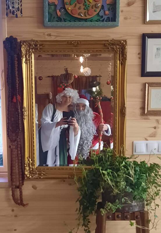 Po mugės visi buvo kviečiami į dirbtuves, kur vaikų laukė italas Kalėdų Senelis. Juo tapo Sebastianas, o jo elfu – Jurga. „Senelis bandė kalbėti lietuviškai, nors jam kur kas lengviau sekasi bendrauti itališkai“, – atvirauja Jurga, namuose su vyru ir vaikais taip pat dažniau kalbanti itališkai.