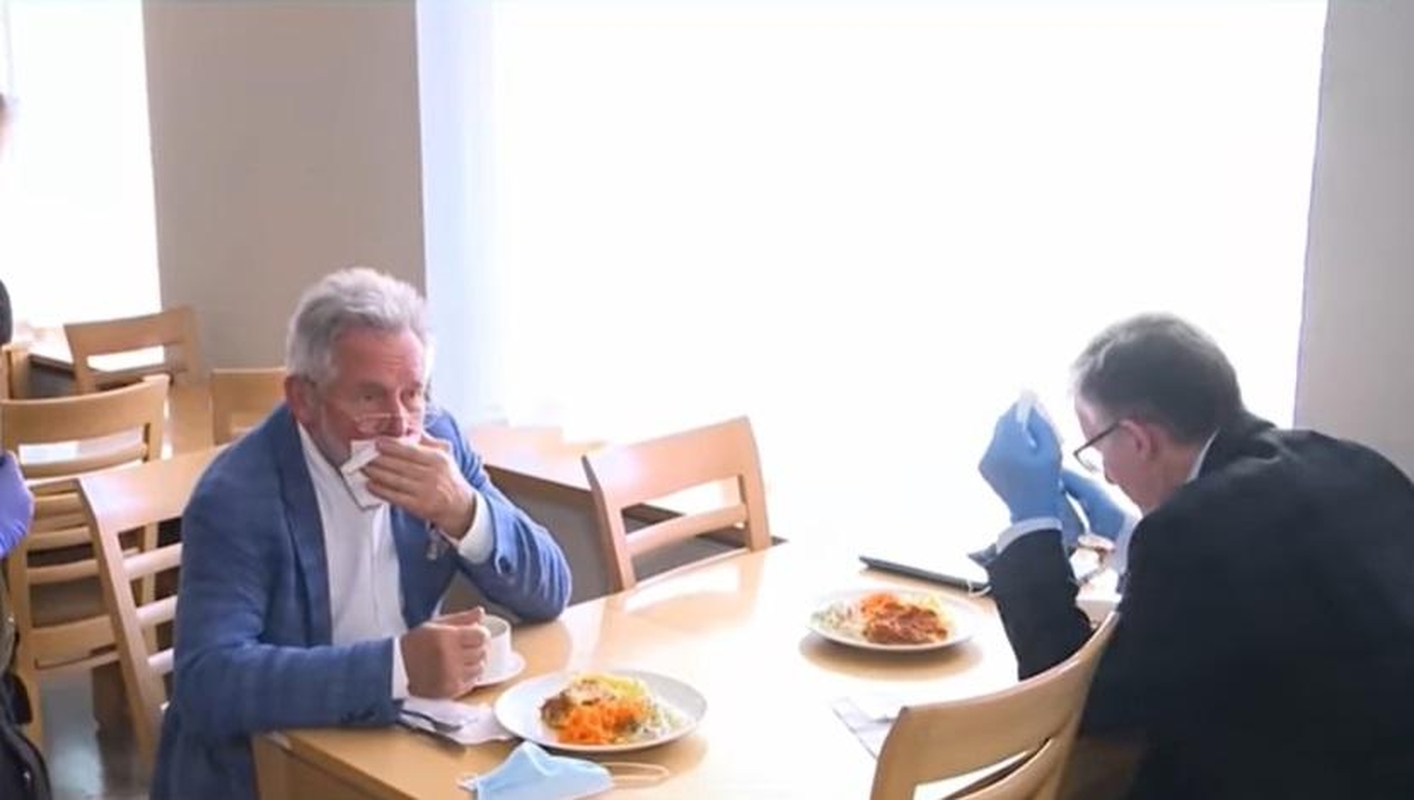 „KK2“ laidos žurnalistams Seimo kavinėje užtikus karantino draudimų nepaisančius ir pietaujančius tris seimūnus – Petrą Nevulį, Algirdą Sysą ir Julių Sabatauską, šie į klausimą, kodėl čia pažeidžiamos karantino taisyklės, sunkiai rinko žodžius, tačiau užsisakytus patiekalus valgė toliau.