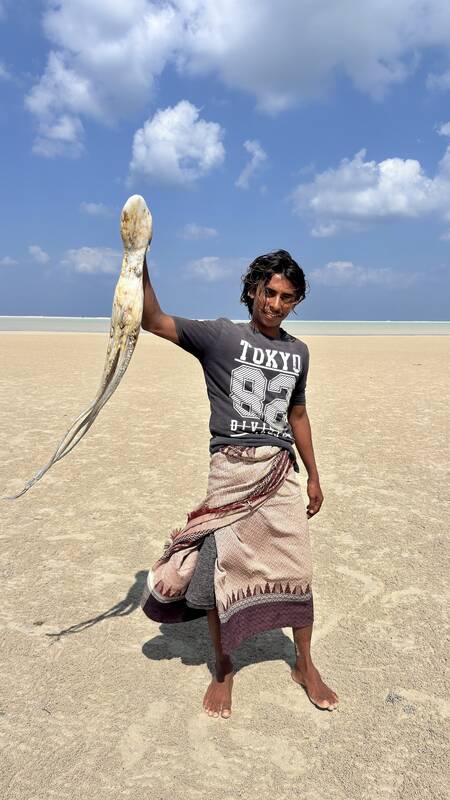 „Šį rytą atšventėme gimtadienį – buvo tortas, balionai ir šokiai. Po to išėjome į žygį kalvomis aplink stovyklavietę, kurioje jau ketvirtą parą laukiame skrydžio. Su mumis yra geriausias salos virėjas, kuriam padeda dar keturi pagalbininkai lauko virtuvėje. Pietums valgysime kažką panašaus į lietuvišką kugelį su vištiena, o vėliau lipsime prie uolų rinkti austrių. Kelias valandas ketiname praleisti svečiuose pas charizmatiškąjį „urvinį žmogų“ – dabar jau visame pasaulyje žinomą personažą. Jis žadėjo mus pavaišinti šviežiomis jūros gėrybėmis.
