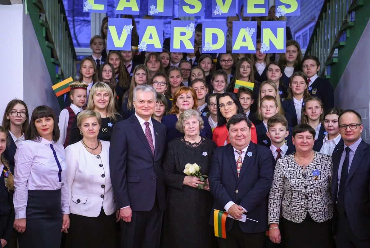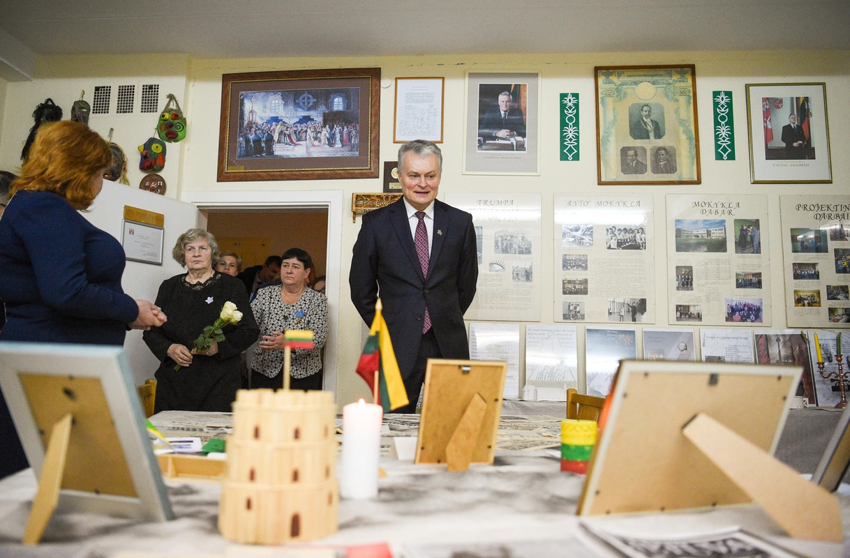„Jūs davėte Lietuvai vieną iš Sausio 13-osios didvyrių D. Gerbutavičių. Šiandien jūs, vaikučiai, augantys labai greitai, netrukus ir patys galėsite padaryti pasirinkimus“, – sakė G. Nausėda, prieš uždegdamas atminimo žvakę progimnazijos fojė.