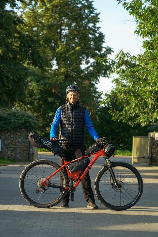 Su vėjeliu: dviratis T. Petraičiui – ir sportas, ir darbo priemonė. Kai nekonsultuoja žmonių, Timas su malonumu sėda ant dviračio ir vežioja maistą žmonėms. / T. Petraičio asmeninio archyvo nuotr.