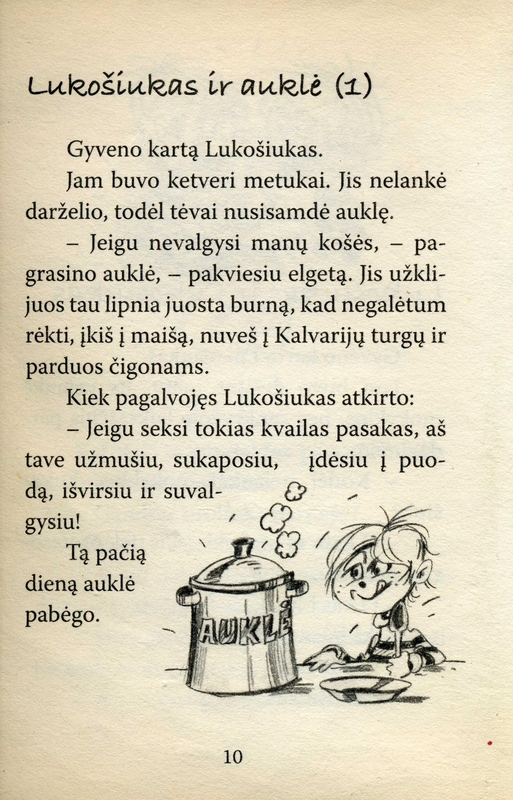 "Jeigu seksi tokias kvailas pasakas, aš tave užmušiu, sukaposiu, įdėsiu į puodą, išvirsiu ir suvalgysiu!" – tai citata iš V.Račicko knygelės "Kartą gyveno Lukošiukas" apsakymo "Lukošiukas ir auklė (1)", kur pagrindinis herojus nedviprasmiškai grasina auklei susidorojimu.