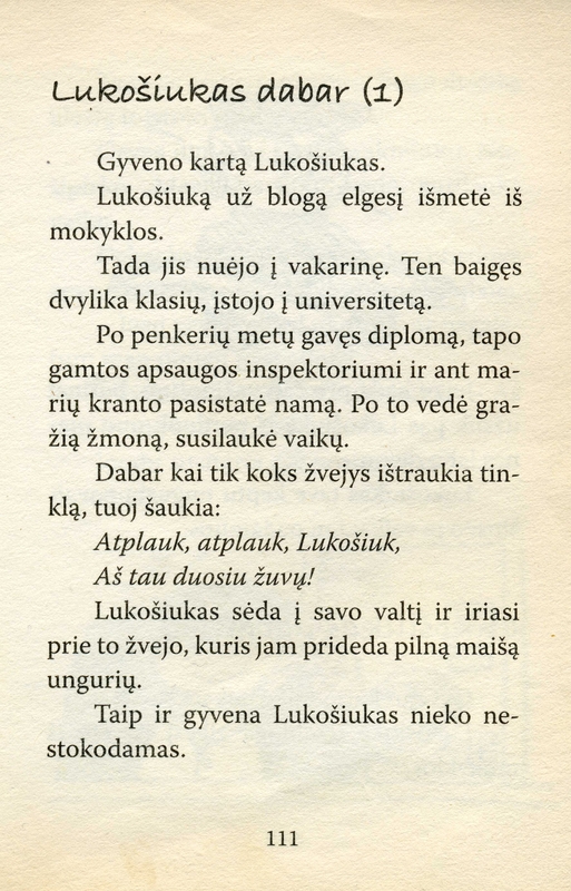 "Lukošiukas sėda į valtį ir iriasi prie to žvejo, kuris jam prideda pilną maišą ungurių. Taip ir gyvena Lukošiukas nieko nestokodamas."