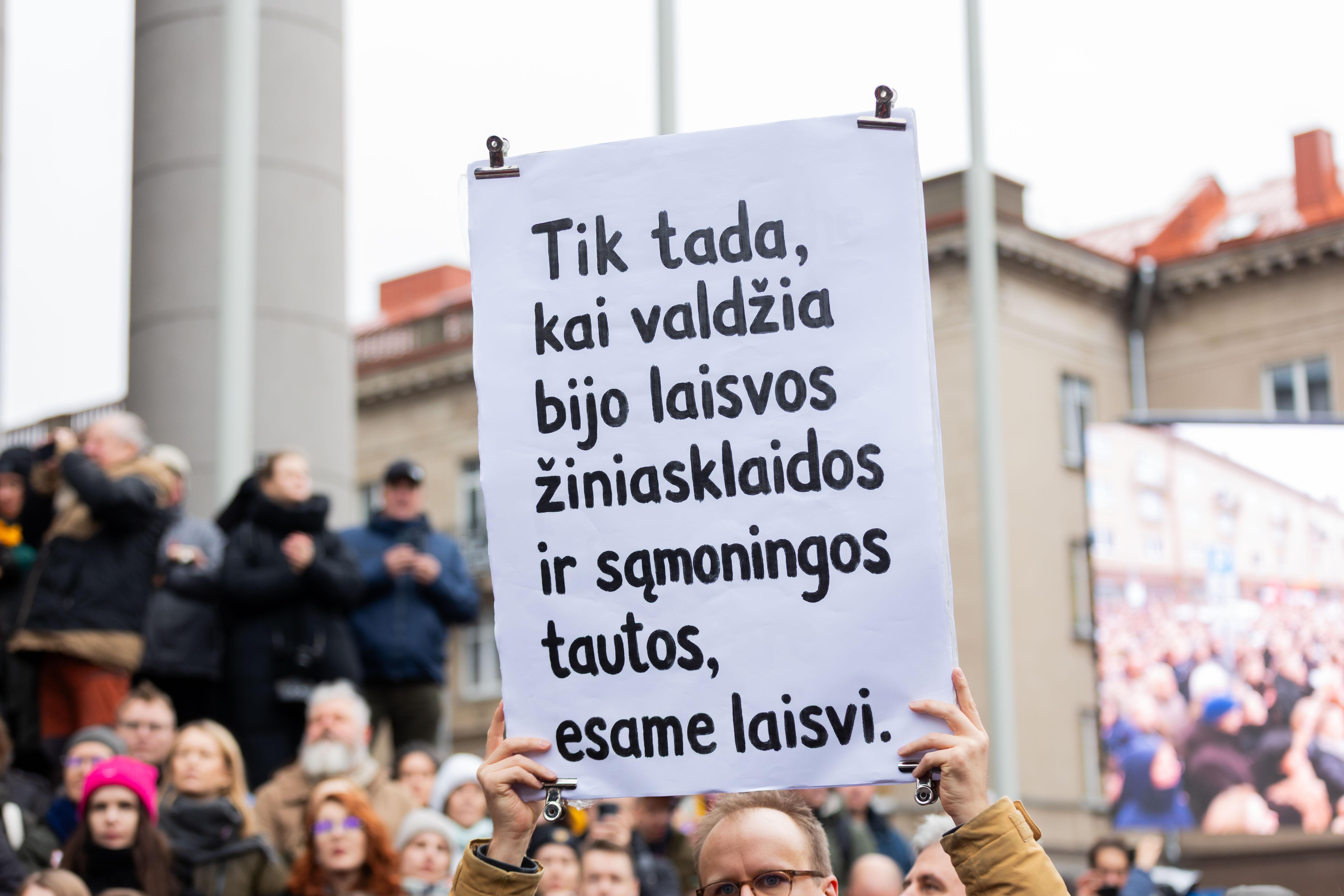 „Šalin rankas“: apie 10 tūkst. žmonių protestavo prieš grėsmę žiniasklaidos laisvei Pereiti į pagrindinį turinį