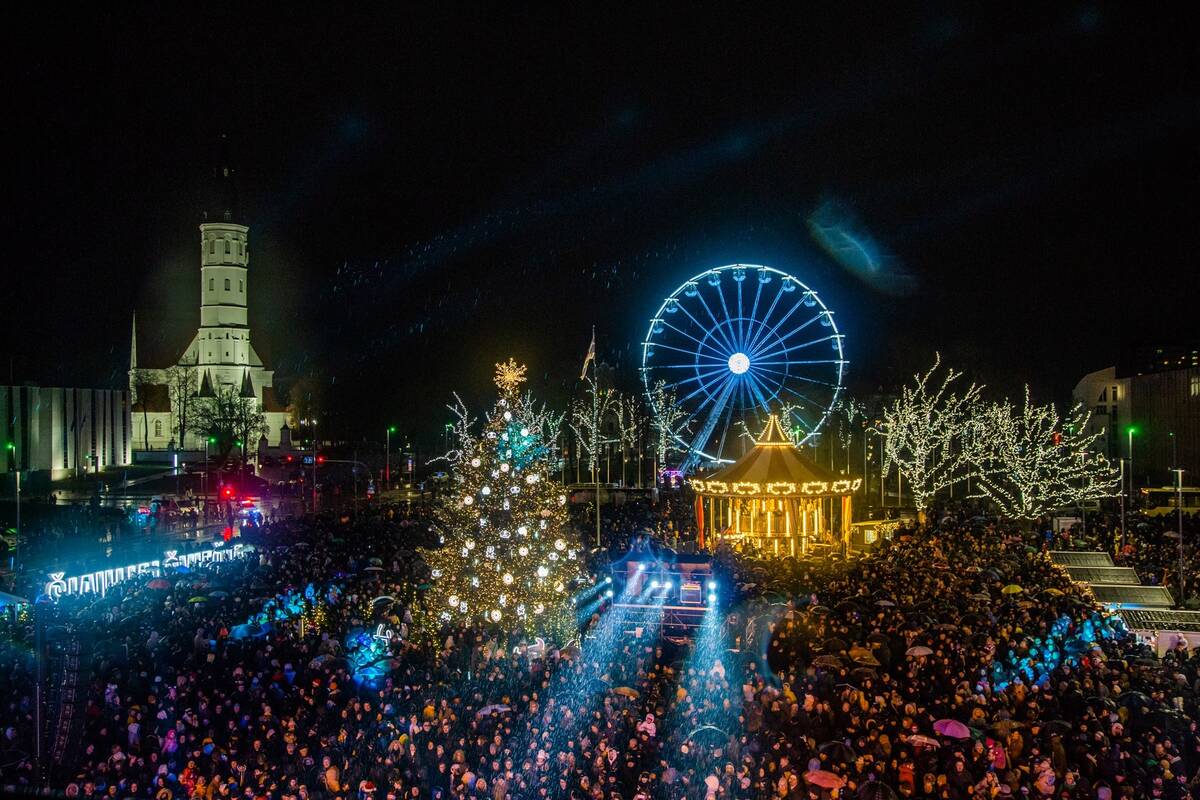 Šiauliai pasitinka saulėtas Kalėdas: įžiebta pagrindinė miesto eglė