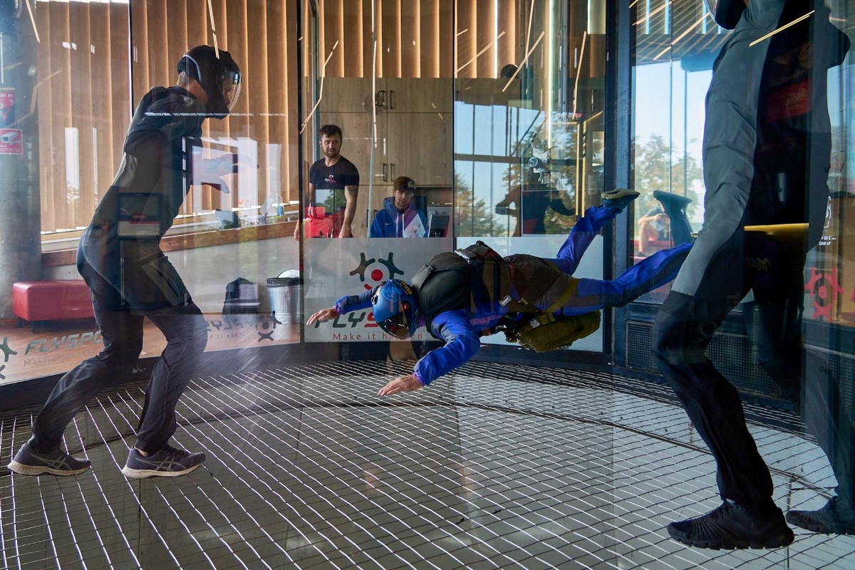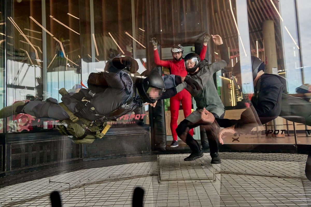 Išklausę teorinę kurso dalį, dalyviai drauge su instruktoriais lankėsi oro tunelyje Varšuvoje, kur idealiomis sąlygomis galėjo treniruotis valdyti savo kūną laisvo kritimo metu su ekipuote ir be jos.