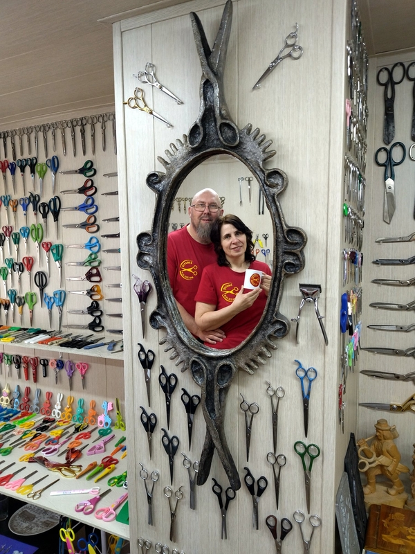 – Tai jau taip. Man padeda, mane palaiko. Iš pradžių tos žirklės buvo kaip ir mano mintis, o dabar jau mūsų. Žmona veda ekskursijas, siūlo idėjų. Apie vienas iš ekspozicijos žirklių yra net pasaką „Ypatingos žirklės“ anūkams parašiusi.