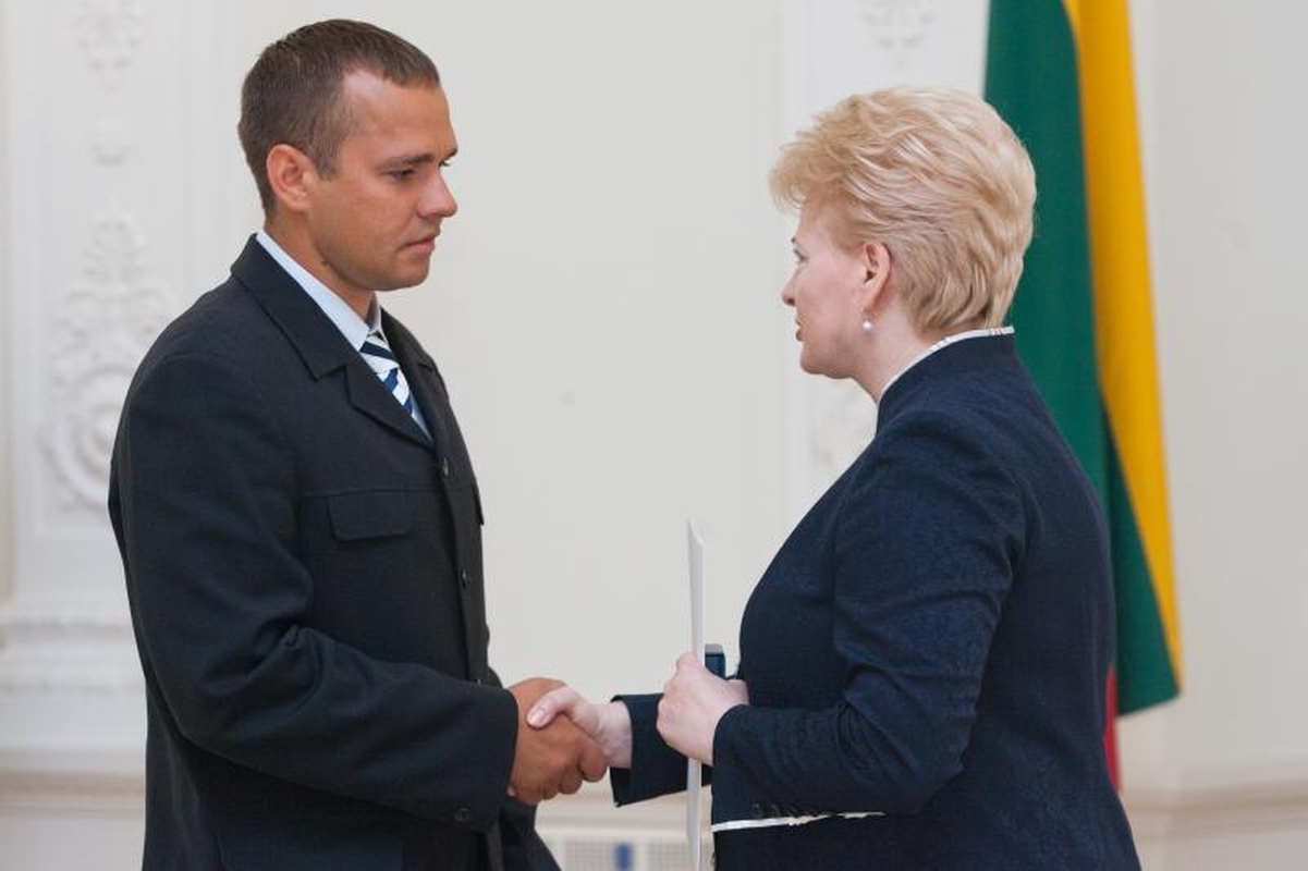 Apdovanojusi R.Meilutytę, šalies vadovė pirmajam plaukikės treneriui Giedriui Martinioniui įteikė padėkos raštą ir Prezidentės atminimo medalį.