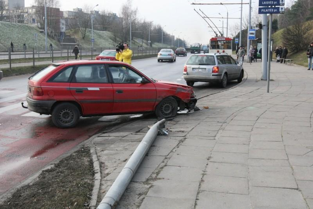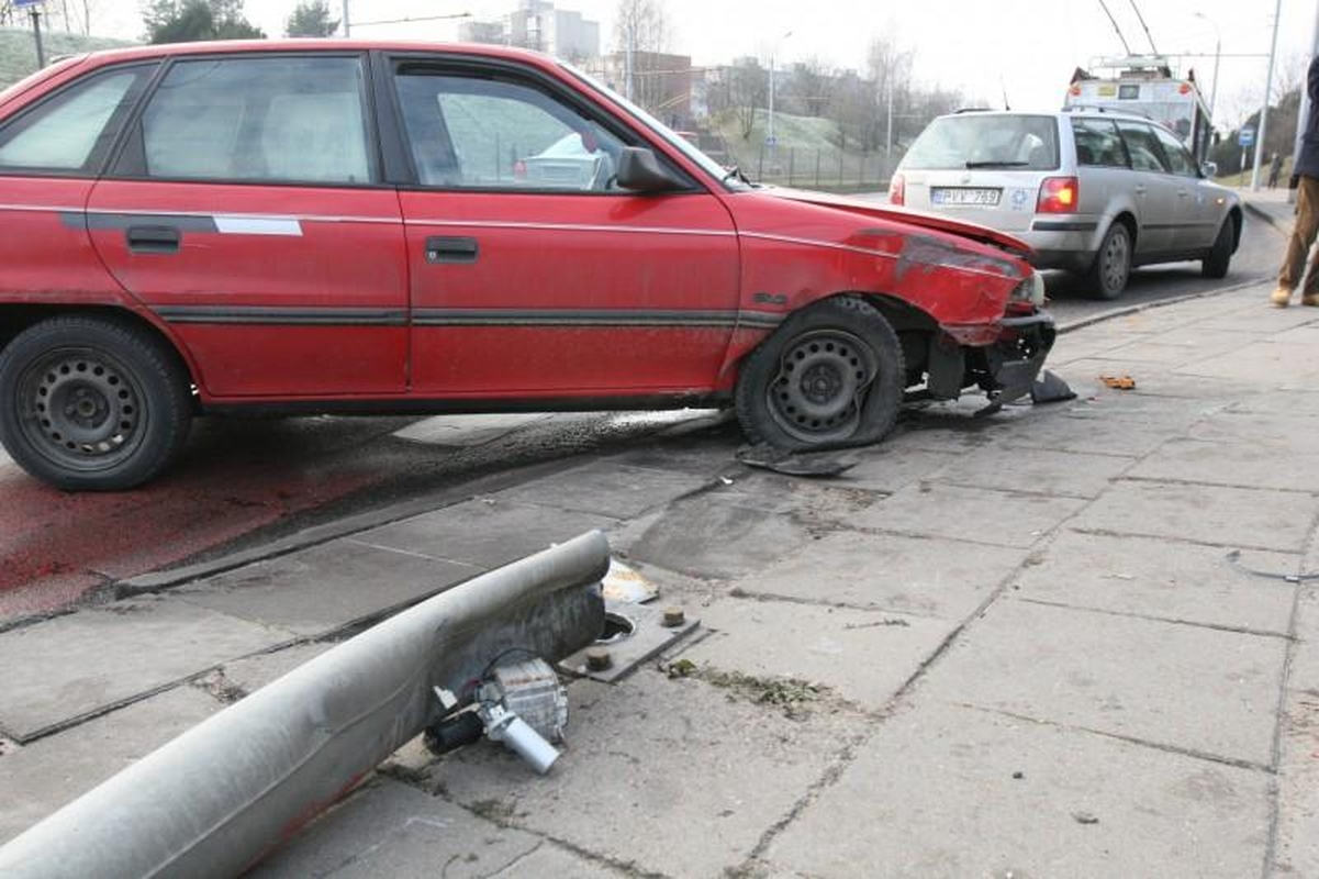 Trečiadienį Teodoro Narbuto gatvėje „Opel“ vairuotojas staigiai stabdydamas priešais pėsčiųjų perėją nesuvaldė transporto priemonės ir rėžėsi į stulpą.