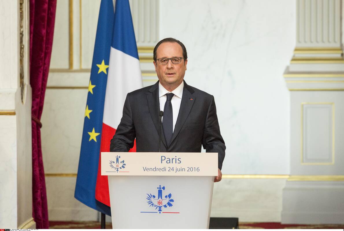 Prancūzijos prezidentas Francois Hollande'as (Fransua Holandas) penktadienį pareiškė, kad britų balsavimas pasitraukti iš Europos Sąjungos pateikia „sunkų išbandymą Europai“ ekonominių ir finansinių pasekmių atžvilgiu.