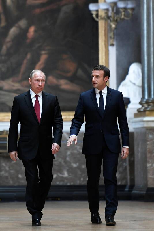 E. Macronas ir V. Putinas susitiko tviskančiuose Versalio rūmuose. Abu lyderiai ten atidarė parodą, skirtą dvišalių ryšių užmezgimo per reformas vykdžiusio Rusijos caro Petro I vizitą Prancūzijoje 300 metų sukakčiai.