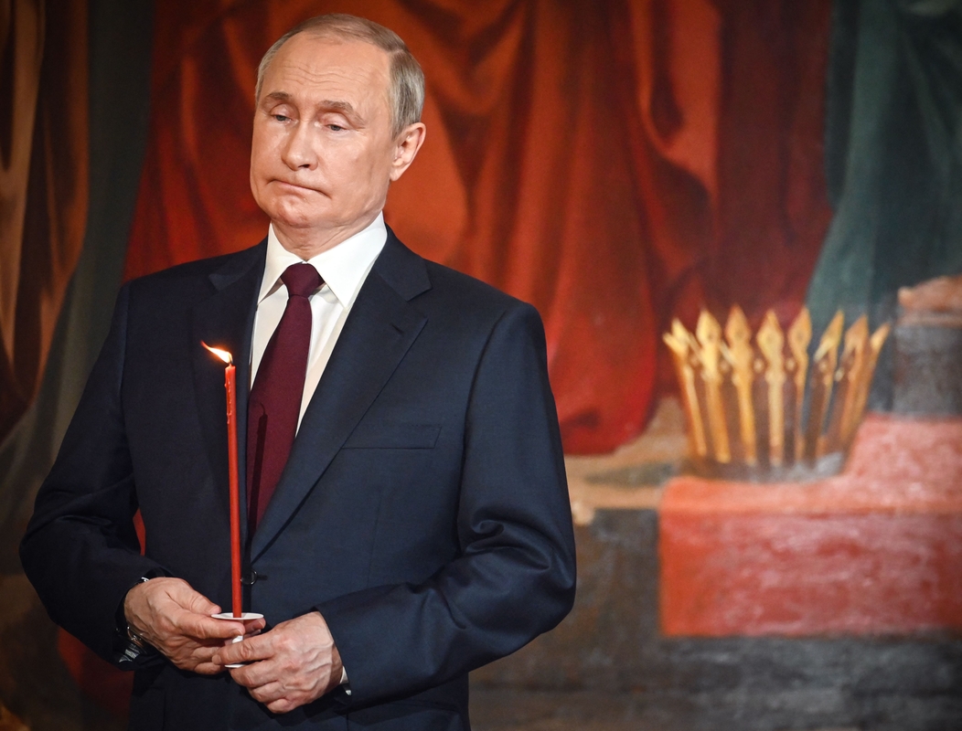 V. Putinas Velykų pamaldose Maskvos Kristaus Ganytojo katedroje nedalyvavo tik per koronaviruso pandemiją. Nuo karo pradžios prieš du mėnesius jis retai rodosi viešumoje.