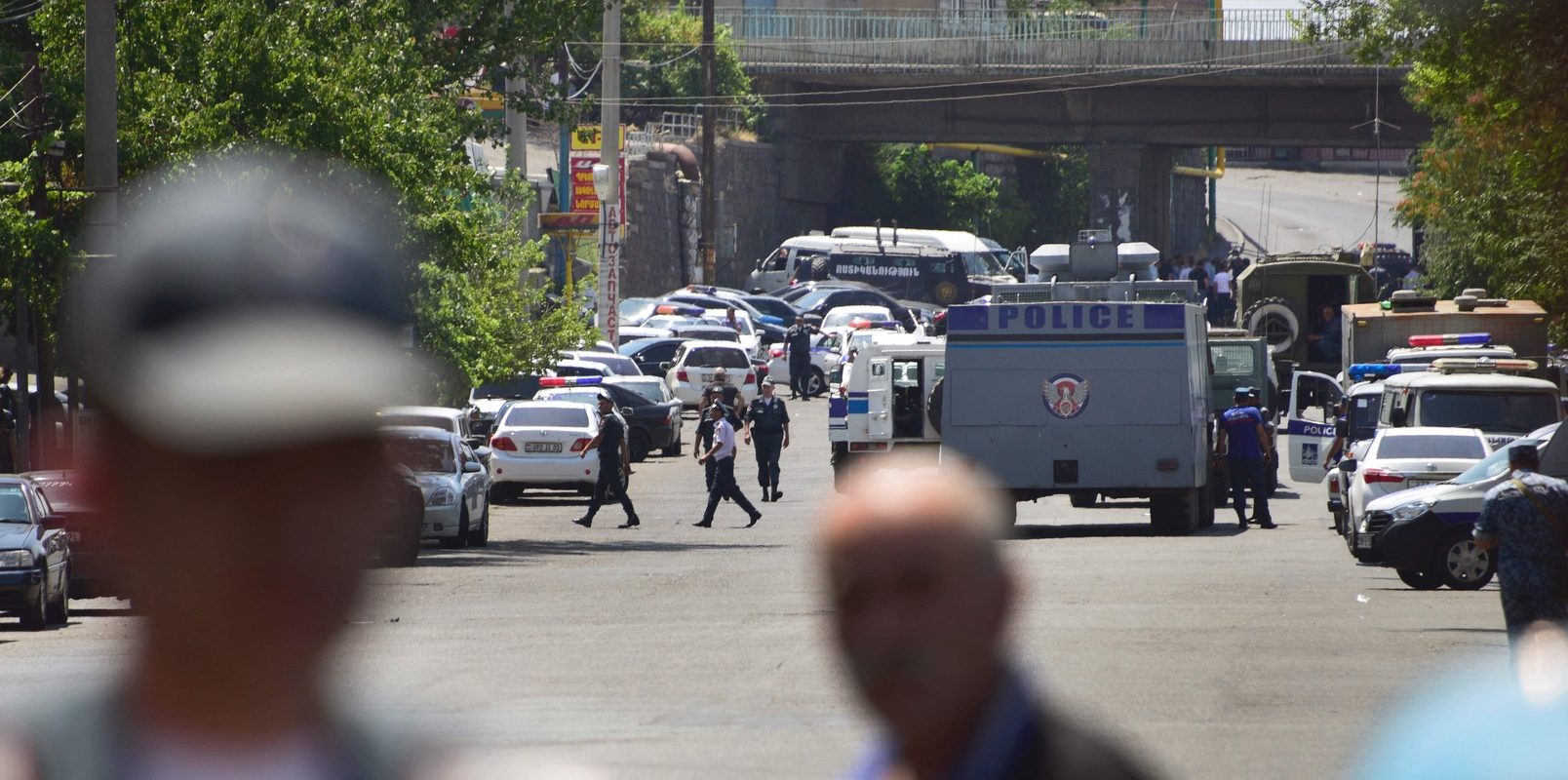 Parlamentaras Nikolas Pašinianas žurnalistams patvirtino, kad policijos ir vidaus pajėgų pastatą Jerevano Erebunio rajone užgrobusi grupė įkaitais laiko aštuonis policininkus, tarp jų – Armėnijos policijos vado pavaduotoją generolą majorą Vardaną Egiazarianą.