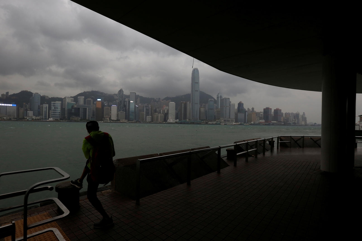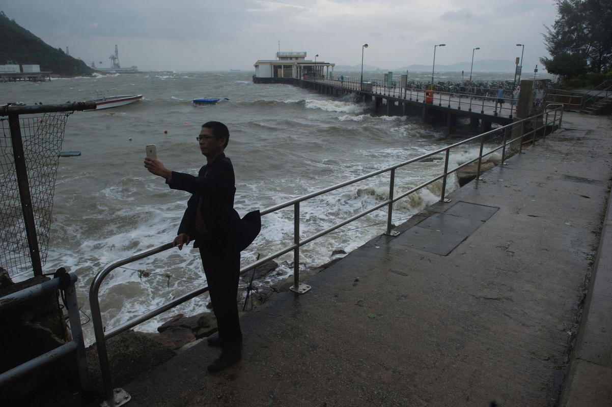 Ankstyvą popietę dar pylė lietus, o vėjo gūsių greitis siekė 105 km per valandą, tad keltai, tarp jų – garsusis uosto „Star Ferry“, neplaukiojo.