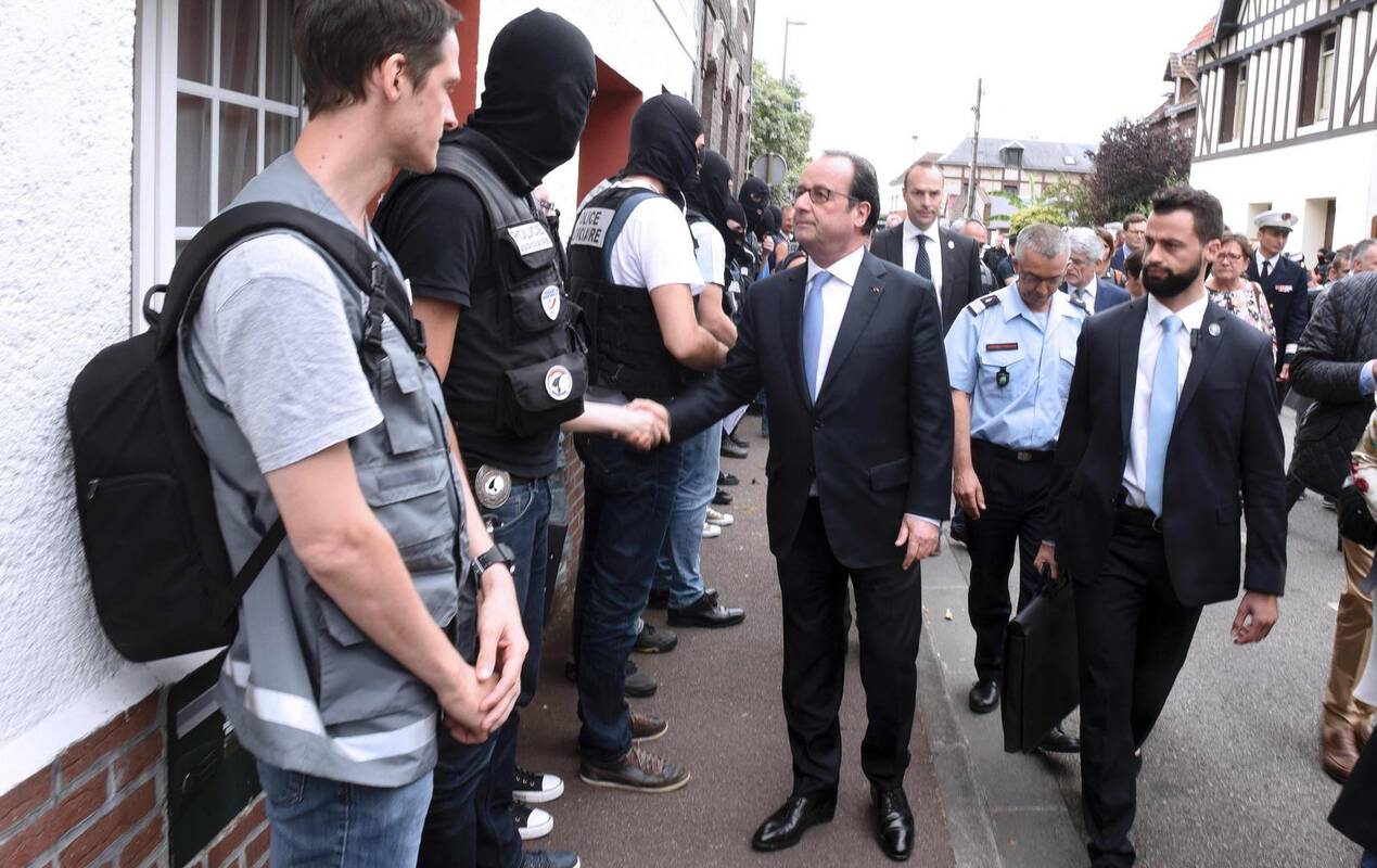 Ph. Hollande'as, atvykęs į atakos vietą Sent Etjen diu Ruvrė miestelyje, anksčiau paskelbtame pranešime pasmerkė šią „šlykščią teroristinę ataką“.