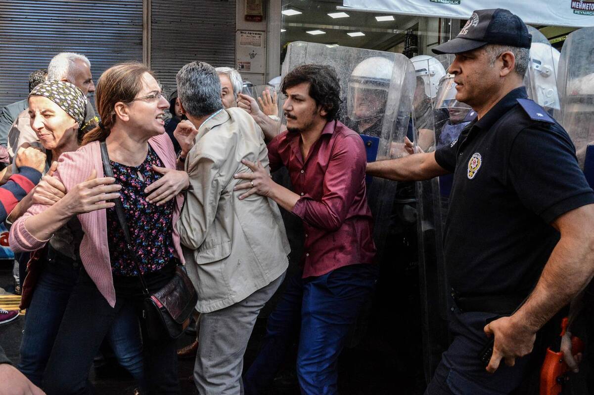 Šimtai protestuotojų mėgino prasiveržti prie didžiausio kurdiško miesto Turkijos pietryčiuose Dijarbakyro rotušės. Pasak naujienų agentūros AFP reporterio, kai kurie demonstrantai apmėtė akmenimis policininkus.
