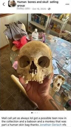 Pareigūnai taip pat tiria feisbuko grupę „Žmonių kaulų ir kaukolių pardavimo grupė“, kurioje J. Gerlachas buvo pažymėtas ir nufotografuotas laikantis kaukolę.