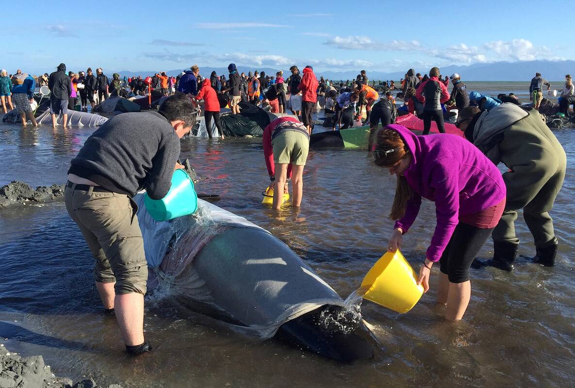 Apsaugos departamento atstovas Herbas Christophersas (Herbas Kristofersas) sakė, kad pakrantėje yra tiek daug negyvų banginių, kad savanoriams sunku įstumti dar gyvus jūros gyvūnus į vandenį.