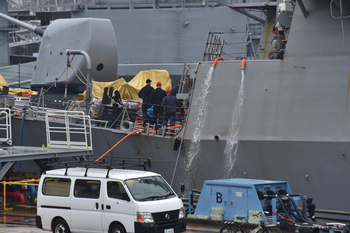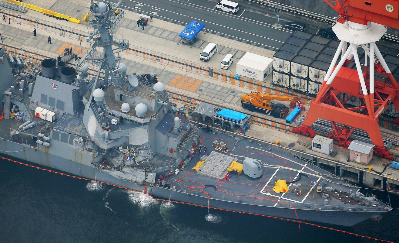 Septynetas karo jūreivių dingusiais laikyti ilgiau kaip parą po susidūrimo, per kurį buvo smarkiai apgadintas JAV eskadrinis minininkas. Japonijos visuomeninio transliuotojo NHK vaizdo reportaže matyti smarkiai sulamdyta „Fitzgerald“ dešiniojo borto dalis ties priekiniu antstatu. Per pramuštą skylę į korpusą tekėjo vanduo.