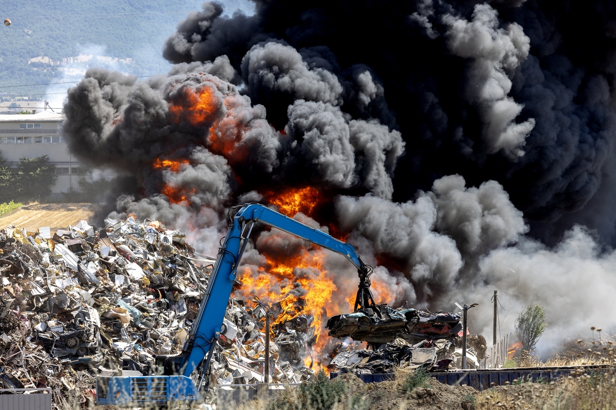 Vidaus reikalų ministerija pranešė, kad gaisras kilo metalo laužo aikštelėje prie sąvartyno, vienas žmogus buvo sužeistas. Valdžia perspėjo žmones likti namuose ir uždaryti langus.