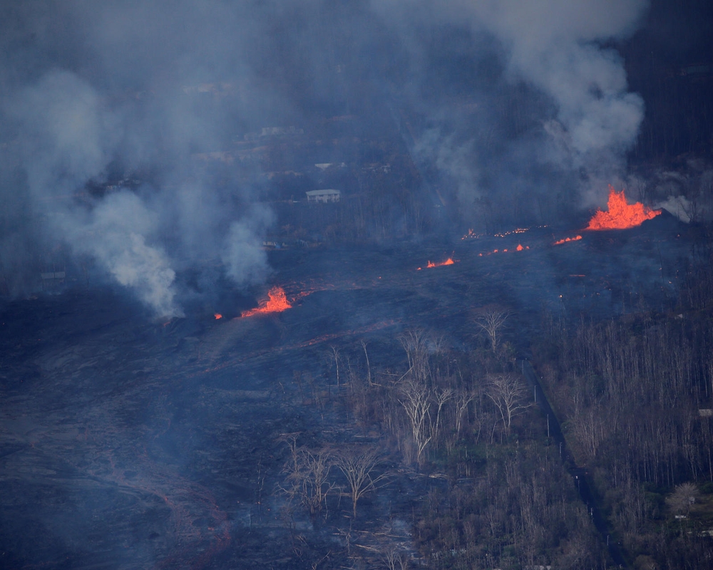 Kaip pranešė BNS, JAV Geologijos tarnybos (USGS) geofizikas Mike'as Poland'as patvirtino, kad įvyko sprogstamasis išsiveržimas. Maždaug už 40 km nuo ugnikalnio viršūnės yra atsivėrusios apie 20 stemplių, iš kurių besiliejanti lava sunaikino daugiau kaip dvi dešimtis namų ir privertė evakuoti apie 2 tūkst. gyventojų. Havajų policijos departamentas nurodė, kad greitkelyje netoli įvažiavimo į Havajų ugnikalnių nacionalinį parką, atsirado plyšių. Didžioji parko dalis – uždaryta lankytojams.