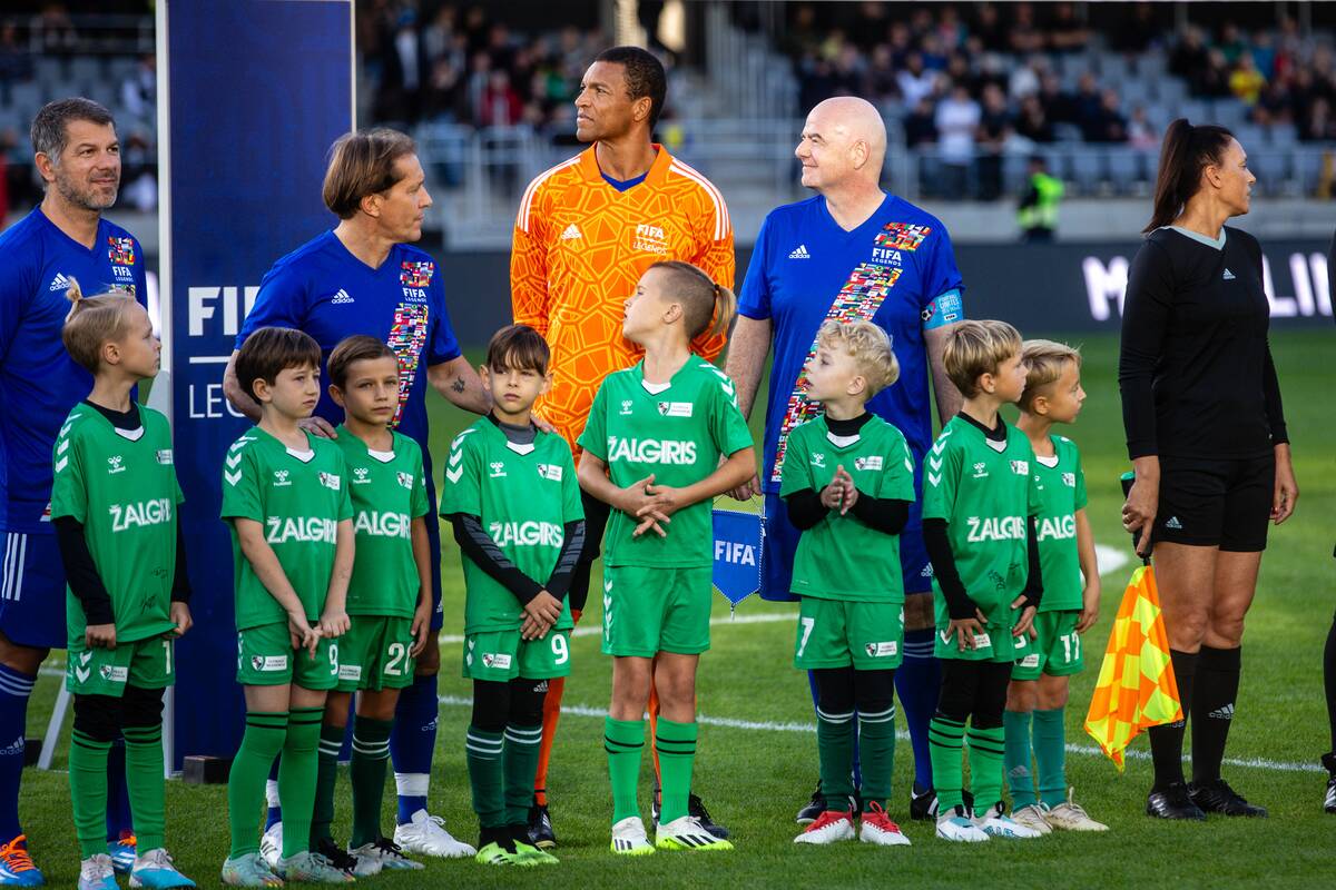 Privačiu lėktuvu į Lietuvą tik šeštadienį atskridęs FIFA vadovas G. Infantino tapo Lietuvos ir FIFA legendų rungtynių dalyviu. Tūkstančiai sirgalių Dariaus ir Girėno stadione per pristatymą plojo pasaulio ir Europos čempionams iš FIFA rinktinės.