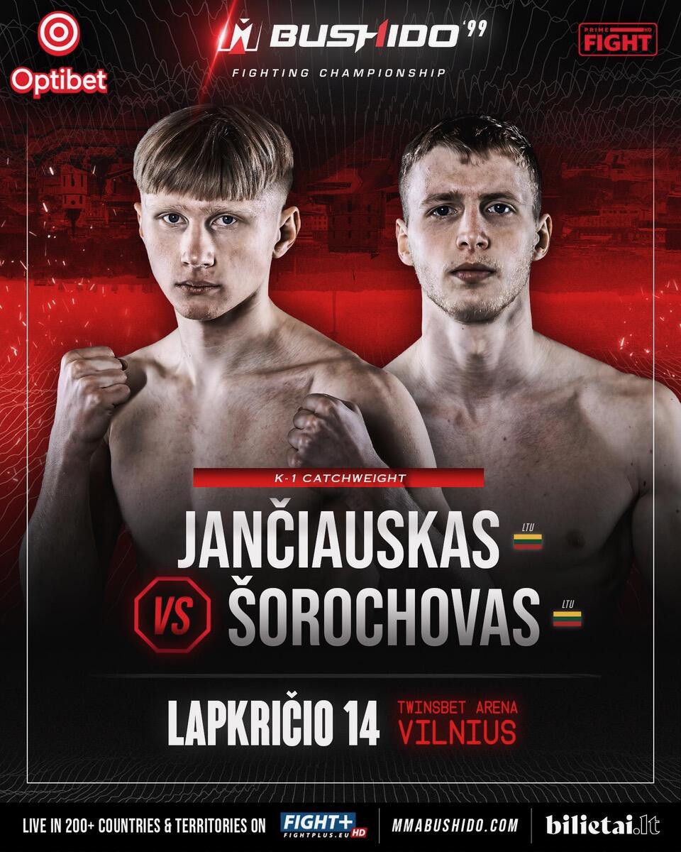 Lapkričio 14 d. Vilniuje, „TwinsBet“ arenoje, tarptautiniame „MMA’99 Bushido“ turnyre jis susitiks su gerai kovos menų pasaulyje pažįstamu Samueliu Šorochovu. „Tai mano galimybė įrodyti, kad mano vardas vertas būti šalia gerai žinomų kovotojų Lietuvoje“, – sakė K. Jančiauskas.