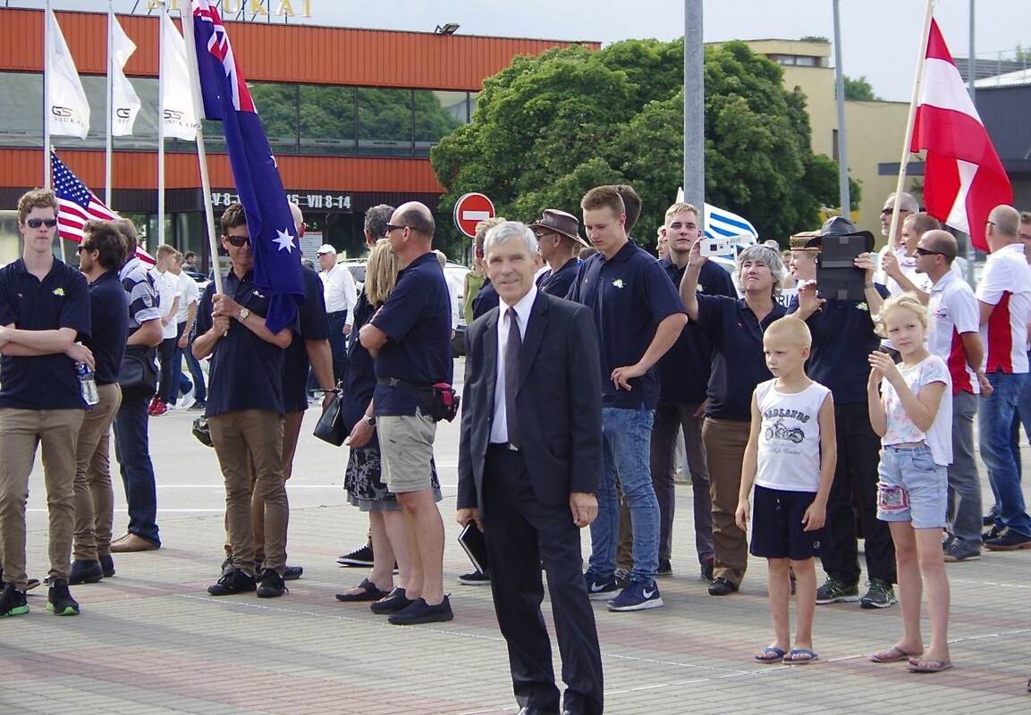 Spalvinga 29–ių šalių komandų kolona su Lietuvos kariuomenės orkestru priešakyje pražingsniavo link Laisvės aikštės, kur jau laukė miestelėnai ir Prienų svečiai.