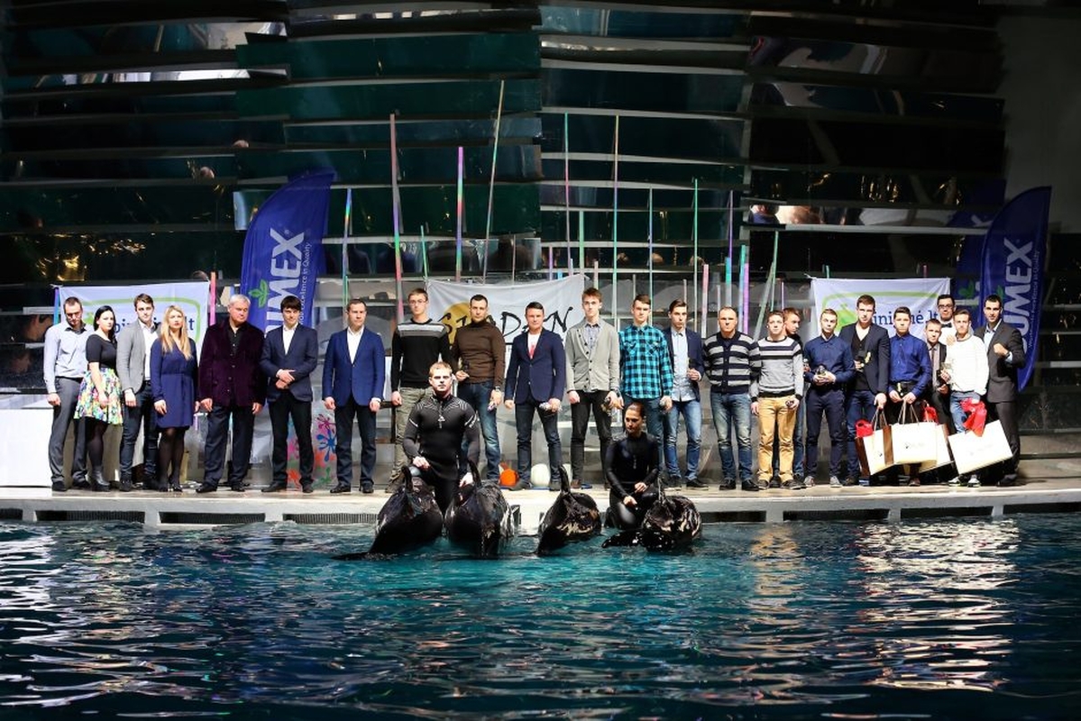 „Shodan“ kiokušin karatė mokykla apdovanoti praėjusių metų geriausiems sportininkus pasirinko neįprastą vietą – delfinariumą.