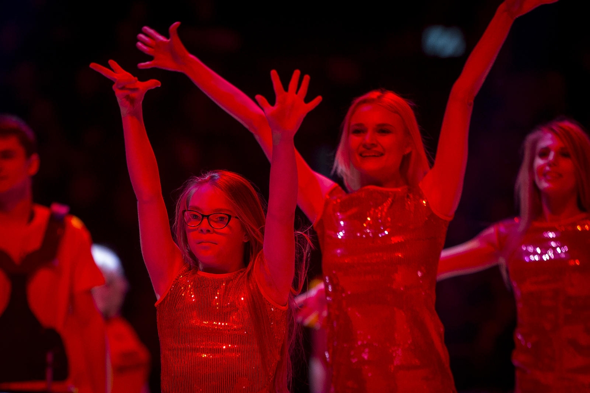 Šokėjos ir būgnininkai surengė širdis virpinantį pasirodymą kartu su specialiųjų poreikių turinčiais žmonėmis, kurie jau kurį laiką repetavo bei ruošėsi savo pasirodymui pilnoje „Siemens“ arenoje.