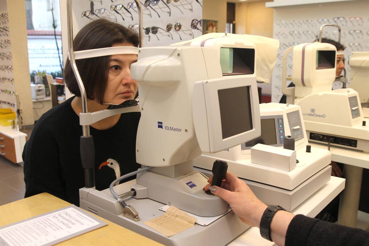 Į optiką užsukusi gydytoja alergologė Gema Rainienė pasiteirauja, ar čia matuojamas akispūdis nekontaktiniu būdu, ir teigiamas atsakymas patvirtina dar vieną pažangos oftalmologijoje aspektą.