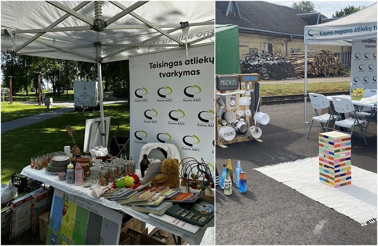 Daiktų dalijimosi stotelės veikia ne tik Kauno RATC DGASA – trečius metus iš eilės „Atiduotuvės“ atvyksta ir į Kauno regione vasarą rengiamas bendruomenių šventes kaip „Atiduotuvių kiemas“. Įkurtame „Atiduotuvių kieme“ bendruomenės nariai nemokamai keičiasi jiems patikusiais daiktais, o mažieji švenčių dalyviai kviečiami žaisti edukacinį, apie atliekų rūšiavimą supažindinantį stalo žaidimą „Ekomonstriukai“. Šią vasarą „Atiduotuvių kiemą“ papildė Kauno RATC darbuotojų pagaminti lauko žaidimai iš panaudotų daiktų: muzikinė siena, kaladėlių bokštas, žiedų gaudyklės.
