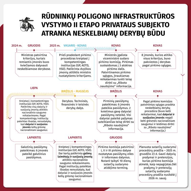 Anksčiau ministerija tikėjosi, jog sutartis su konkurso antrojo etapo nugalėtojais pasirašys iki 2025 metų pabaigos. Ji BNS anksčiau nurodė, kad gavo dvi konkurso dalyvių pretenzijas dėl konkurso rezultatų, abi jas atmetė kaip nepagrįstas.