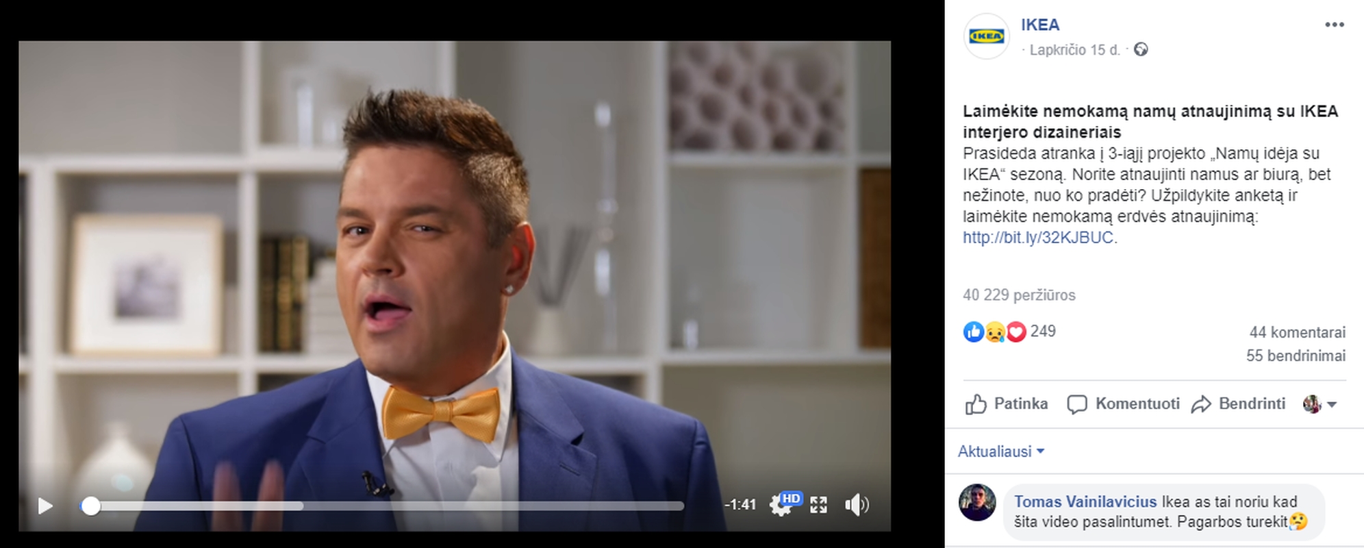 Prekybos tinklo socialinio tinklo paskyroje taip pat galima rasti pasipiktinimų. „IKEA, aš tai noriu, kad šitą vaizdo įrašą pašalintumėte. Pagarbos turėkite“, – rašė Tomas.