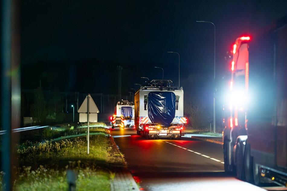 Dėl skirtingo Lenkijos ir Lietuvos geležinkelio vėžių pločio ir nevienodų traukinių gabaritų elektrinis traukinys atskirais vagonais naktį iš sekmadienio į pirmadienį į Vilniaus intermodalinį terminalą buvo atgabentas sunkvežimiais.