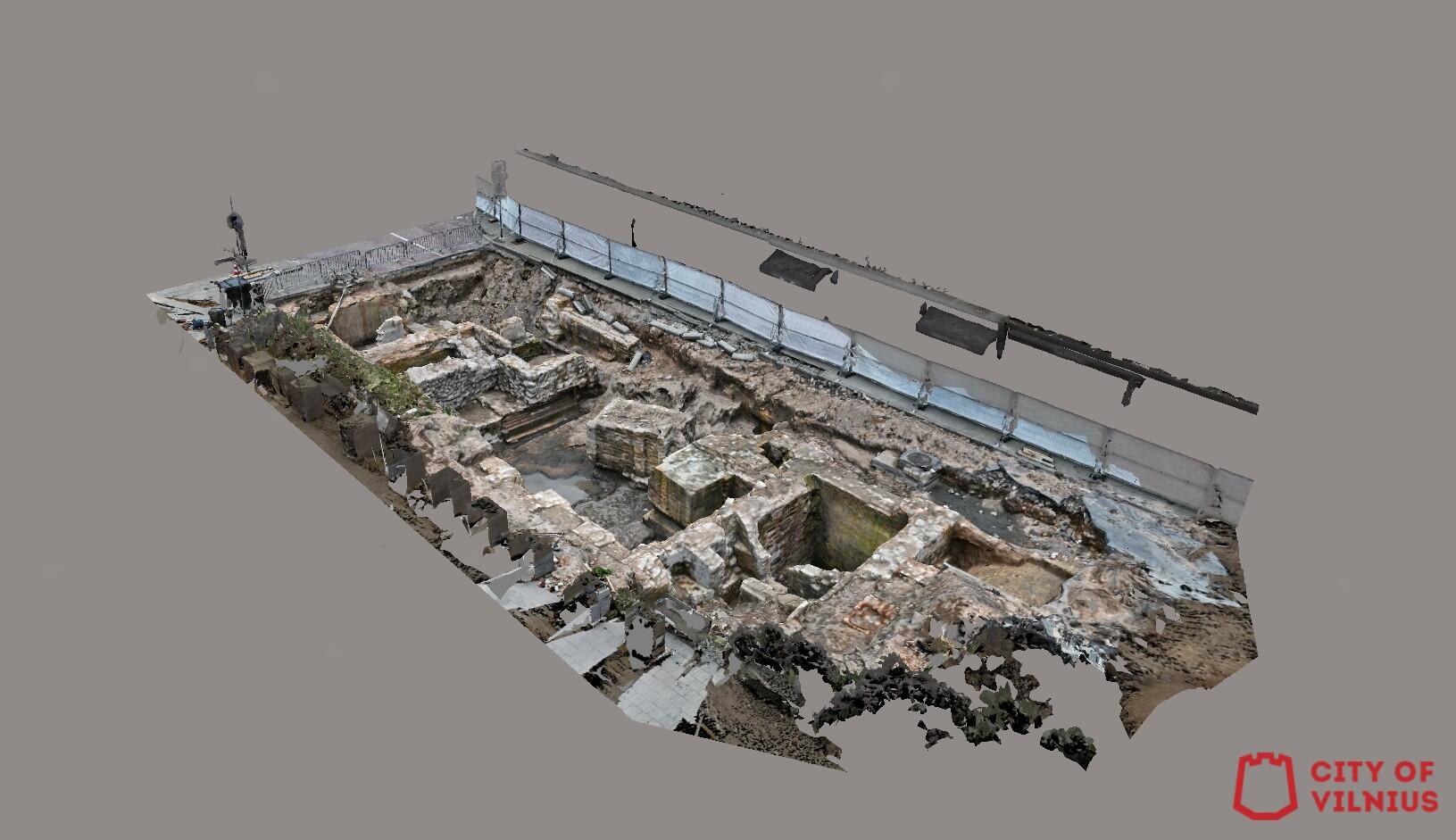 Vokiečių – Domininkonų gatvių sankryžoje atkastų pamatų 3D modelis: https://vppub.blob.core.windows.net/fotogrametrija/Vokieciu_gatve/Vokieciu_1_etap/App/index.html#%2F