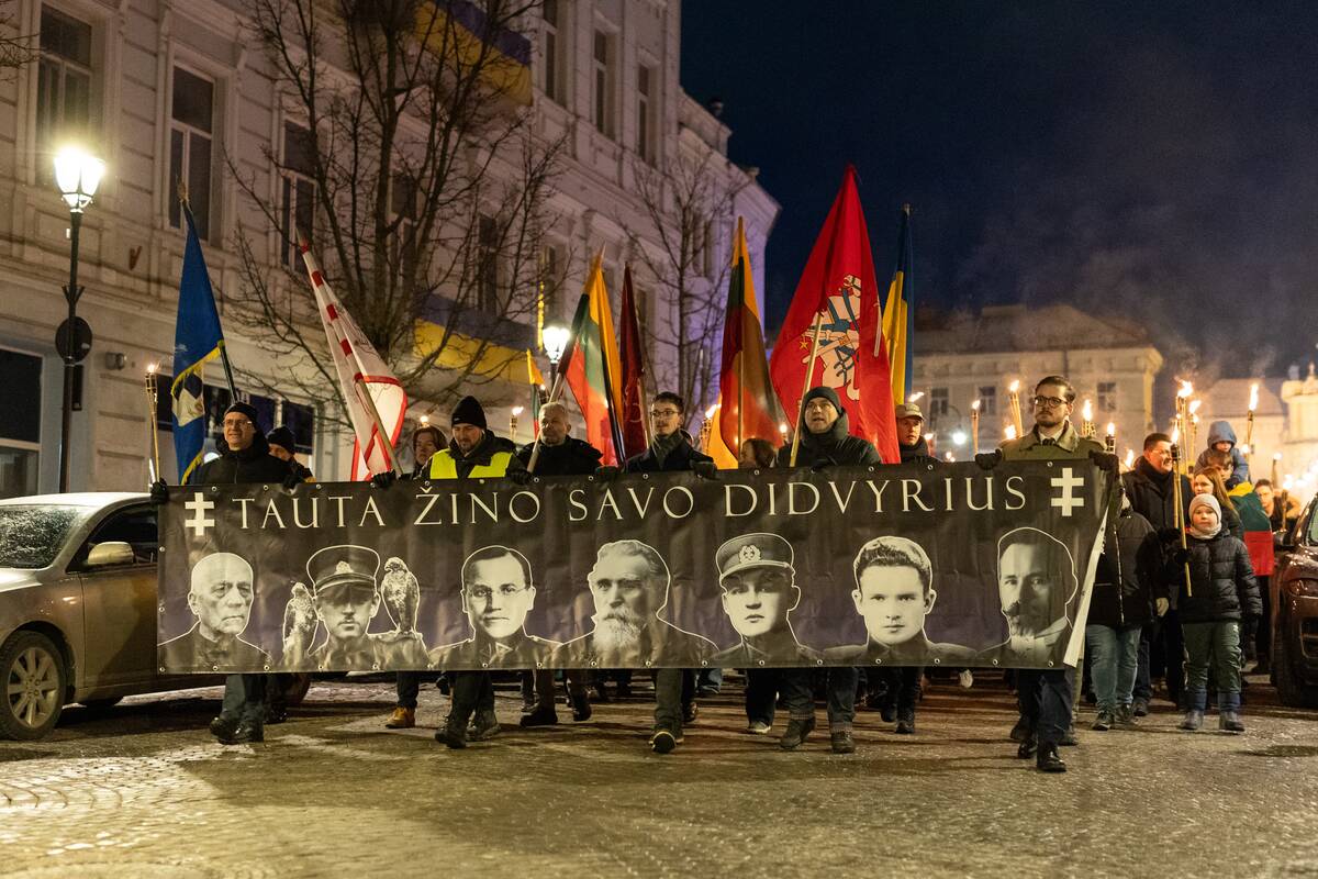 Eitynių dalyviai sekmadienio vakarą rinkosi prie Vasario 16-osios Akto signataro Jono Basanavičiaus paminklo ir žygiavo iki Lukiškių aikštės.