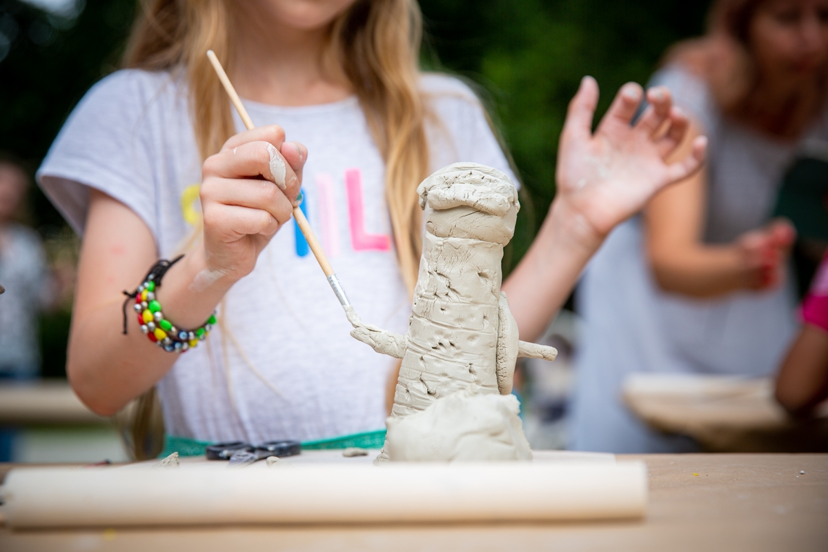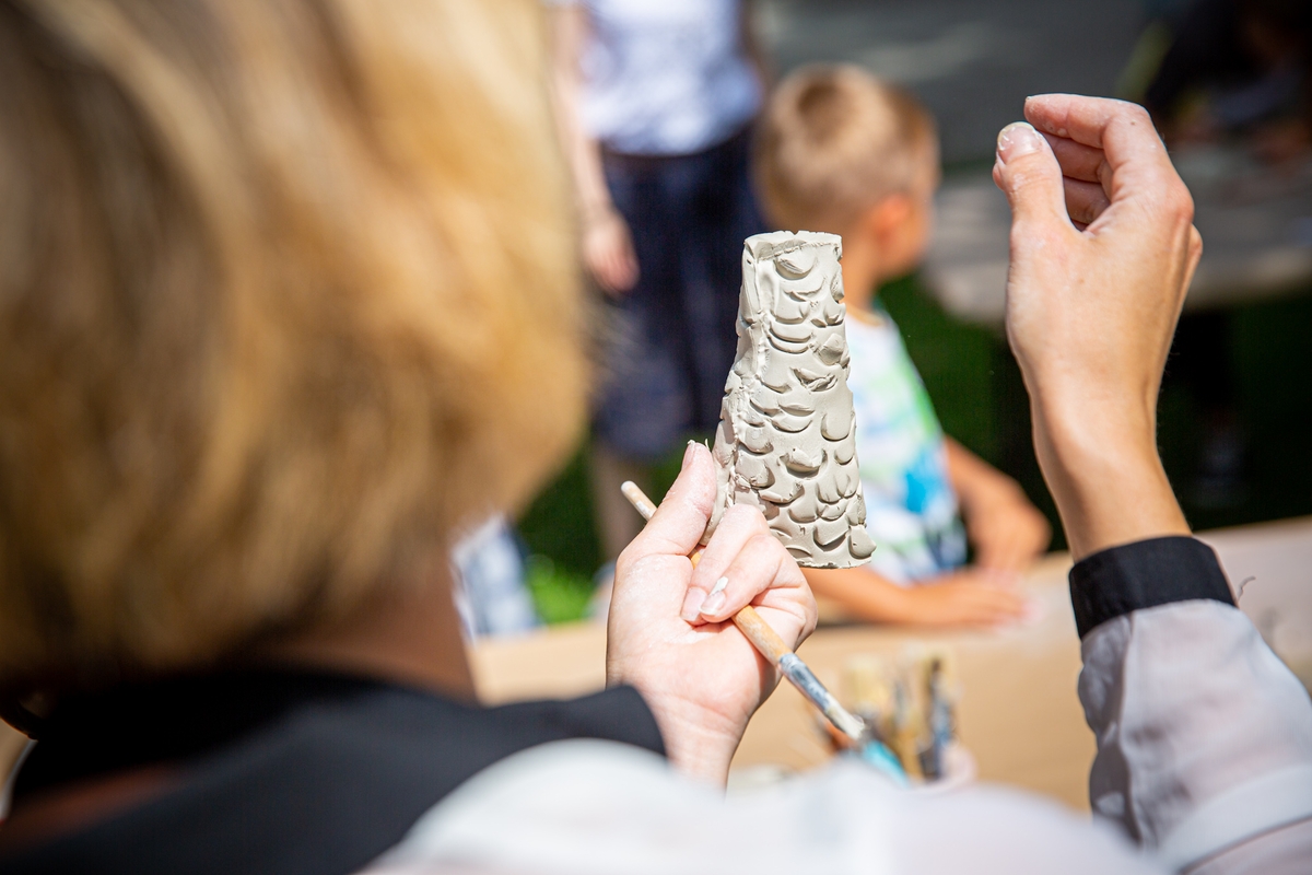 Dirbtuvių metu kartu su keramike vaikai džiaugsmingai lipdė molines skulptūrėles pagal menininko Leono Striogos skulptūrą „Didelis širdies gerumas“, kuri įkvėpė Globėjų dienos simbolį.