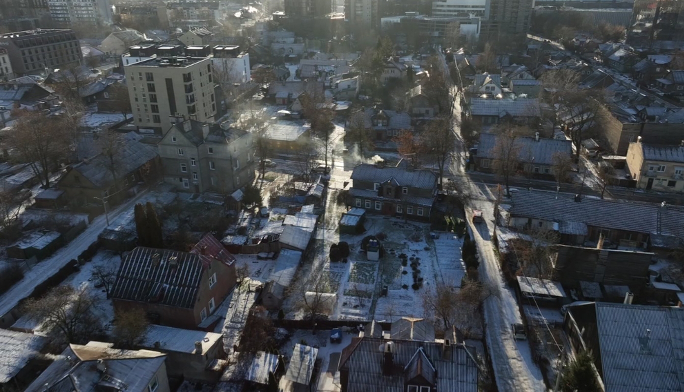 Vienoje pusėje – dangoraižiai ir Vilniaus miesto centras, o visai greta – XIX amžių menantys mediniai pastatai.