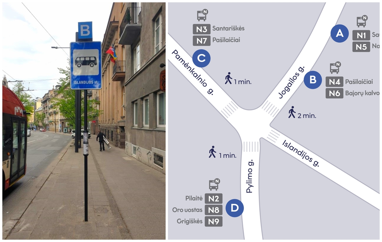 Centro poliklinikos, Jogailos ir Islandijos stotelių pavadinimai atnaujinti – visoms trims suteikti nauji vardai pagal šalia esančią gerai žinomą Islandijos gatvę, kuri yra svarbus traukos centras nakties metu. Jogailos stotelė padalinta į dvi – jas atskirai atpažinsite kaip Islandijos st. (A) ir Islandijos st. (B). Islandijos stotelė tapo Islandijos st. (C), o Centro poliklinikos stotelė pakeitė vardą į Islandijos st. (D).