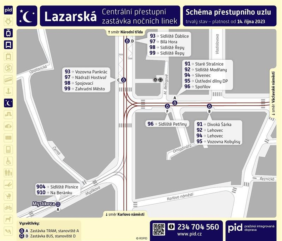 Lazarská stotis Prahoje (Čekijoje) – svarbiausia naktinio viešojo transporto persėdimo stotelė mieste.