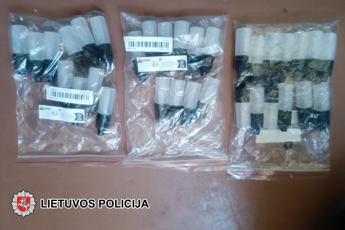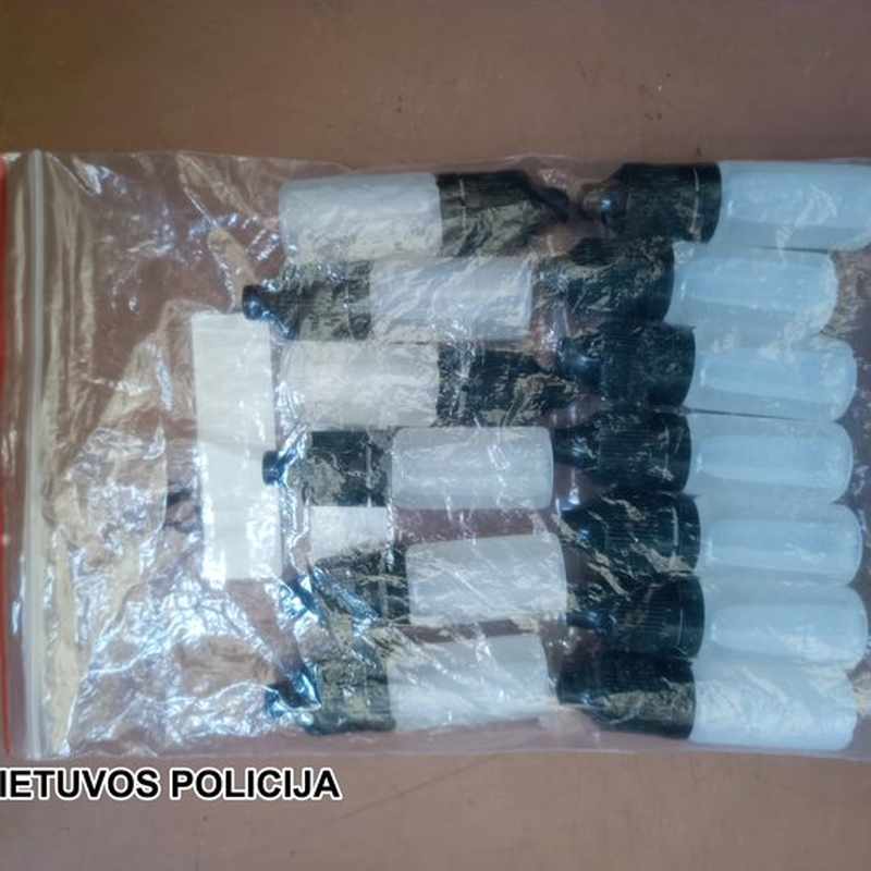 Turima informacija pasitvirtino – pareigūnai sulaikė jiems žinomą, anksčiau teistą jaunuolį (gimęs 2006 m.) – pas jį buvo rasta ir paimta 10 užsukamų plastikinių buteliukų su skysčiu – sintetiniais kanabinoidais „smile“.
