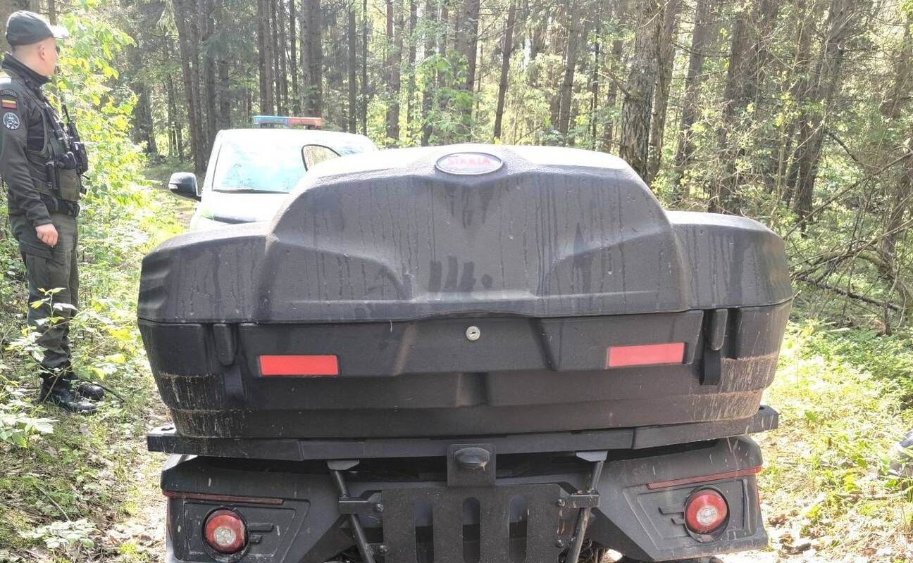 Penktadienį pasienio ruože tarnybą vykdę Varėnos pasienio rinktinės Gintaro Žagunio užkardos pareigūnai Šalčininkų rajone pastebėjo Pulkės šilu ties Dieveniškėmis be valstybinių numerių važiuojantį įtartiną keturratį motociklą. Pasieniečiai nusprendė vairuotoją sustabdyti ir patikrinti.